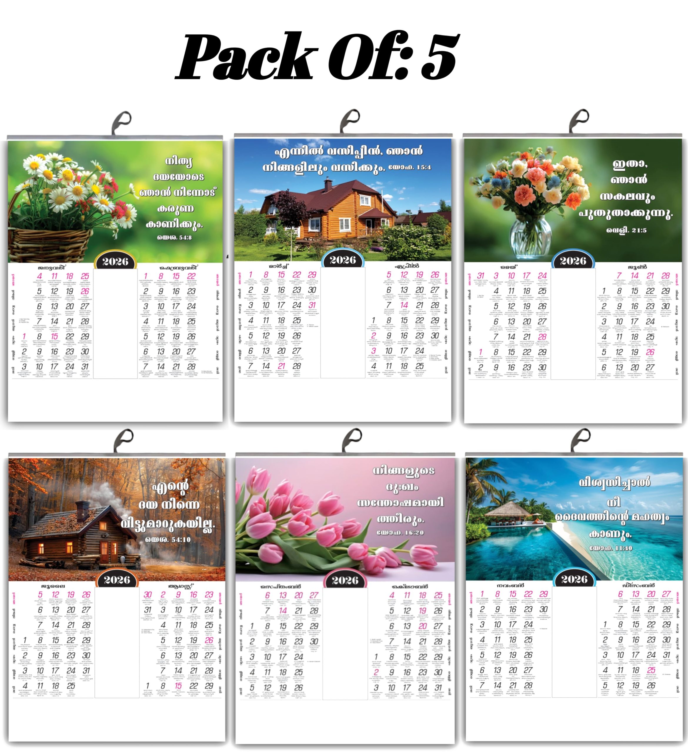 Experience the beauty of 2026 with this exquisitely designed Malayalam calendar, featuring stunning high-resolution images of vibrant flowers and graceful birds. Each of the 6 pages showcases captivating nature photography paired with inspirational Malayalam promise words (വാഗ്ദാനങ്ങൾ) that bring daily motivation and positive energy to your living or workspace. Printed on premium Real Art Glossy Paper with 100 GSM thickness, this calendar delivers exceptional color clarity and durability. Measuring 20 inches in length and 15 inches in width, it's perfectly sized for wall display in homes, offices, shops, or prayer rooms. The glossy finish enhances the visual appeal of the floral patterns and bird imagery, creating an elegant piece of functional art. This calendar serves as a perfect blend of traditional values and modern aesthetics, making it an ideal gift for festivals, housewarmings, or corporate occasions while helping you stay connected with important dates, festivals, and cultural events throughout the year.